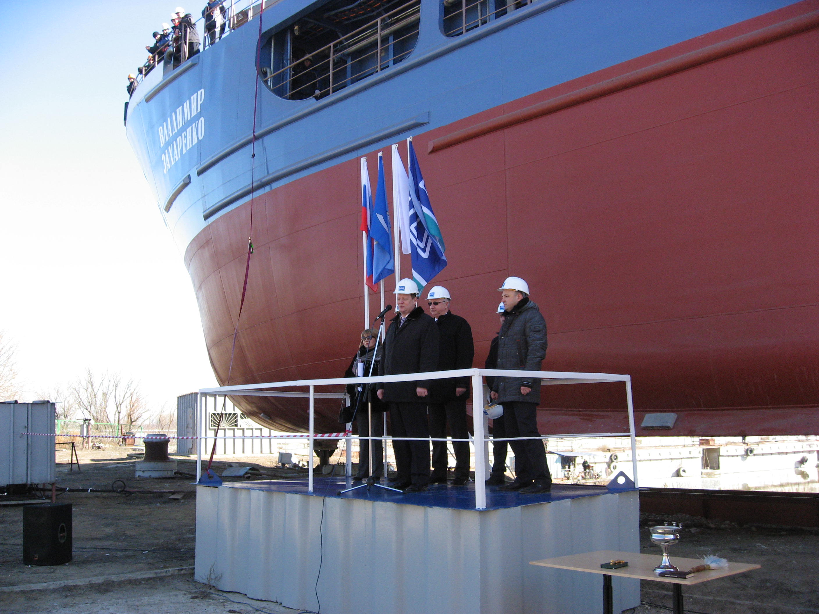> Спуск на воду самоходного сухогрузного судна "Владимир Захаренко" проекта RSD 49